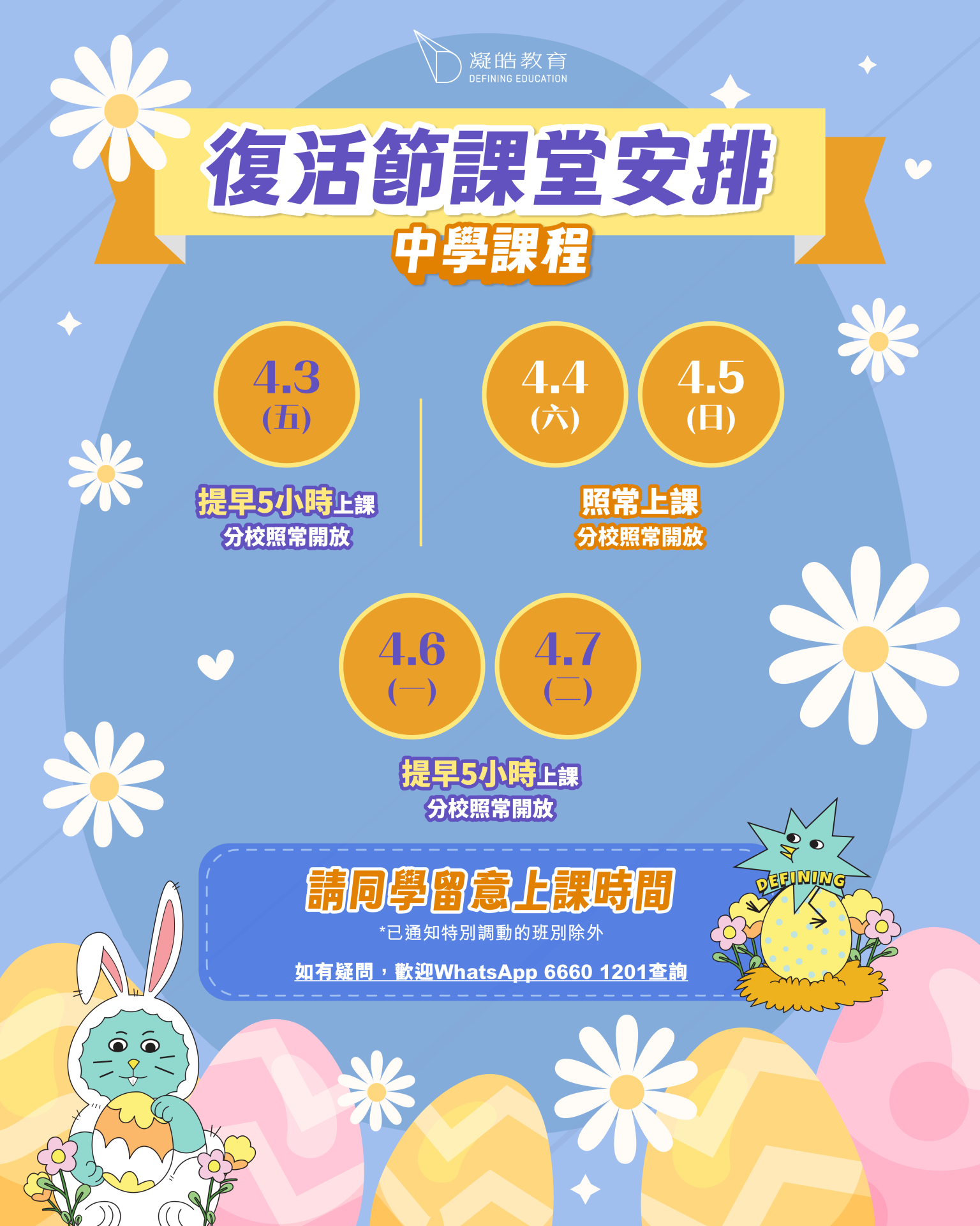 📢 凝皓提提你:復活節課堂安排【中學課程】請同學留意上課時間🐰🐥🍬