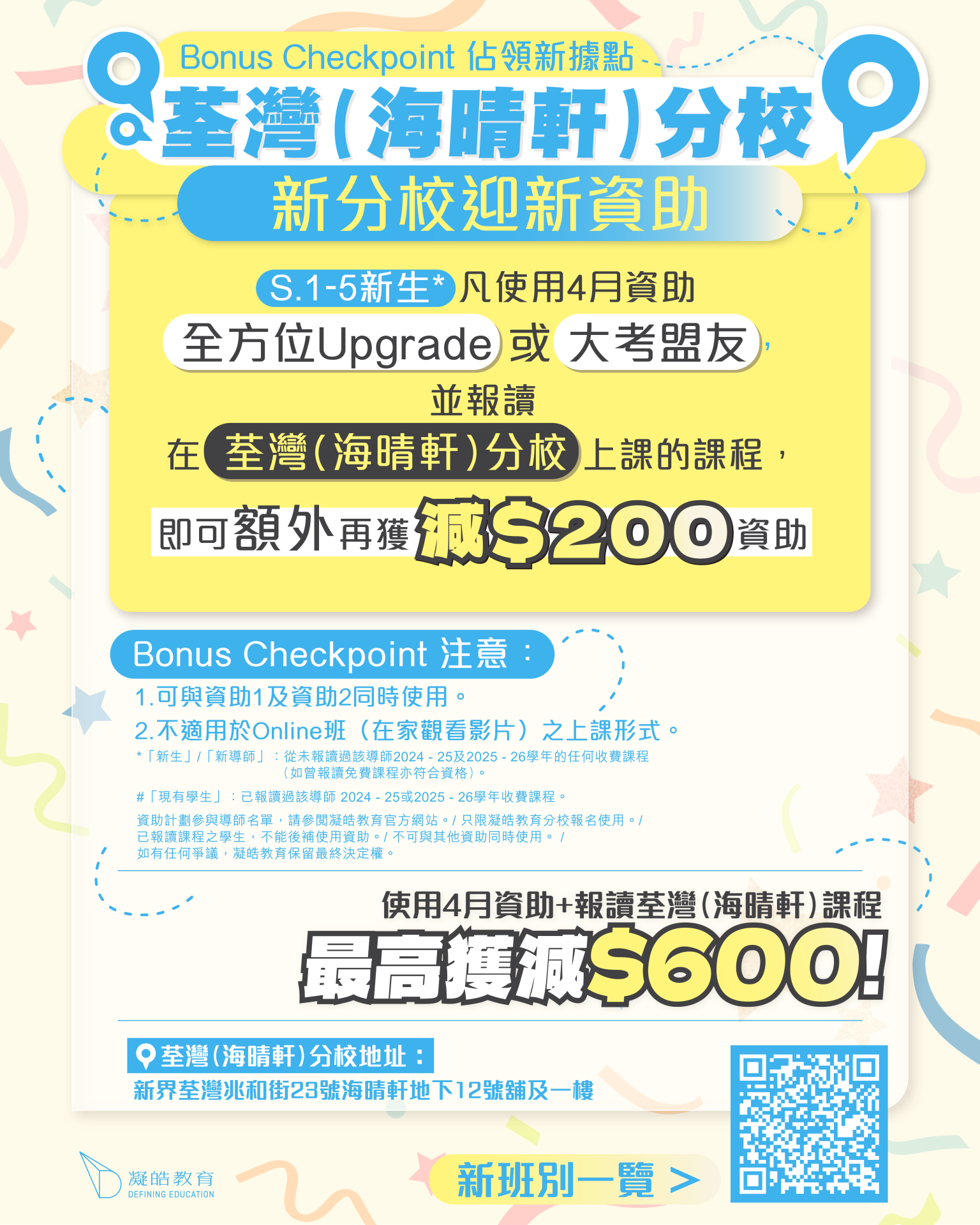 | S.3 ⼤考精讀班 | WRN25DH306-L | 10/5