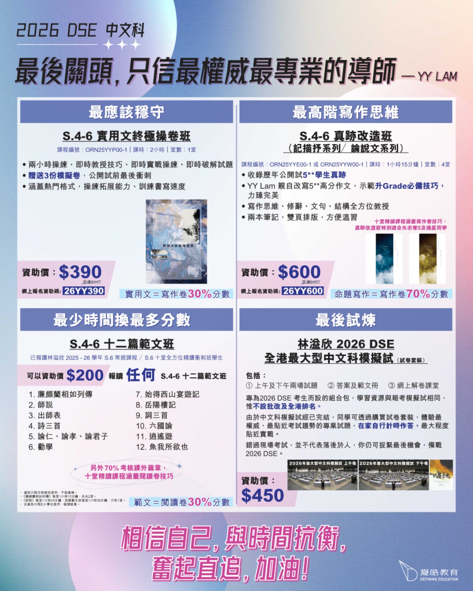 | 林溢欣 2026 DSE 全港最大型中文科模擬試(試卷套裝) | ORM25YY00MOCK | $450 | / | / | 按此報名 |