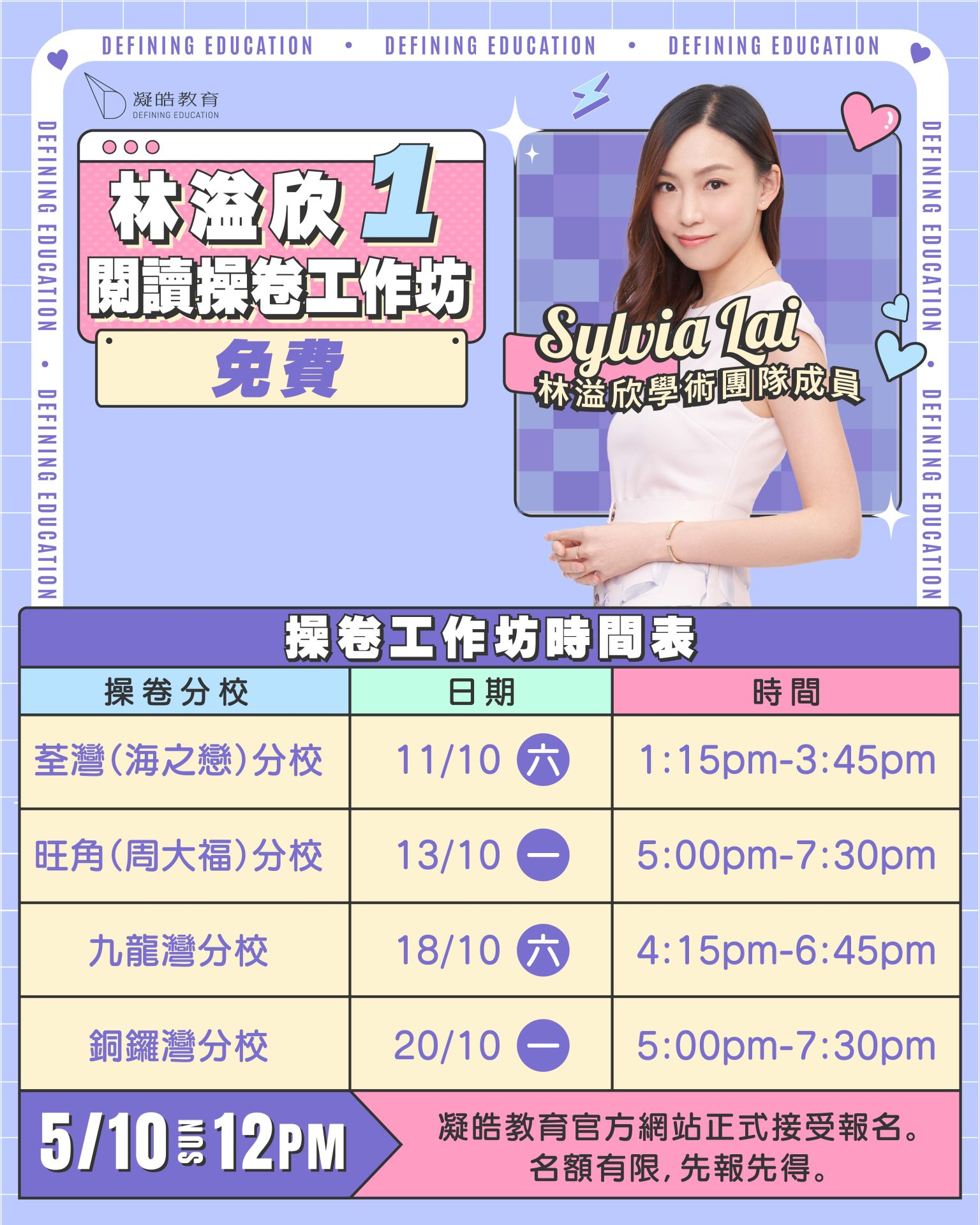 03 十月 【林溢欣】免費閱讀操卷工作坊(一) Posted at 17:54h in course, frontpagenews, 最新活動及優惠 by admin admin 0 Comments 0 Likes 立即報名 導師簡介 課程內容及時間表