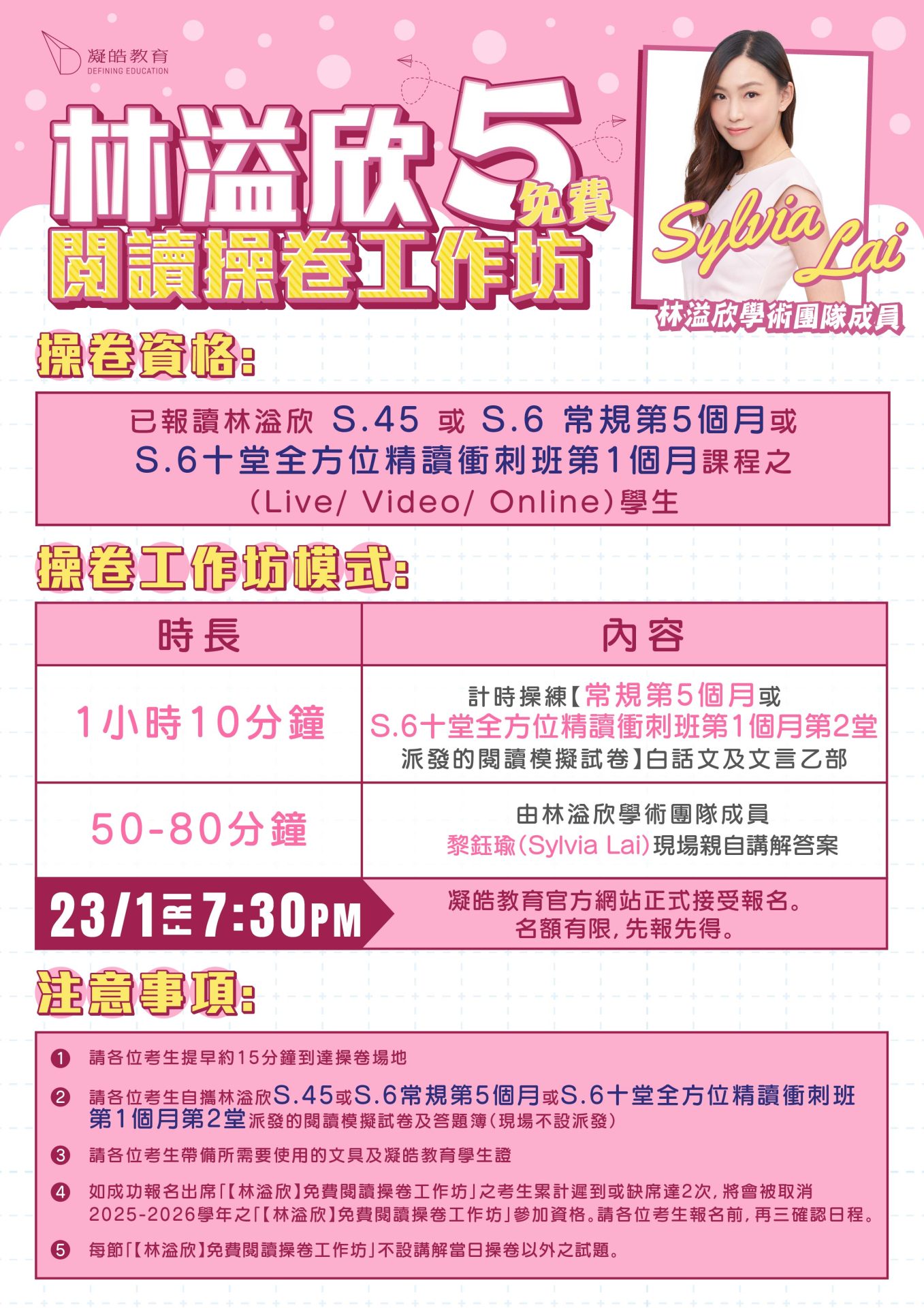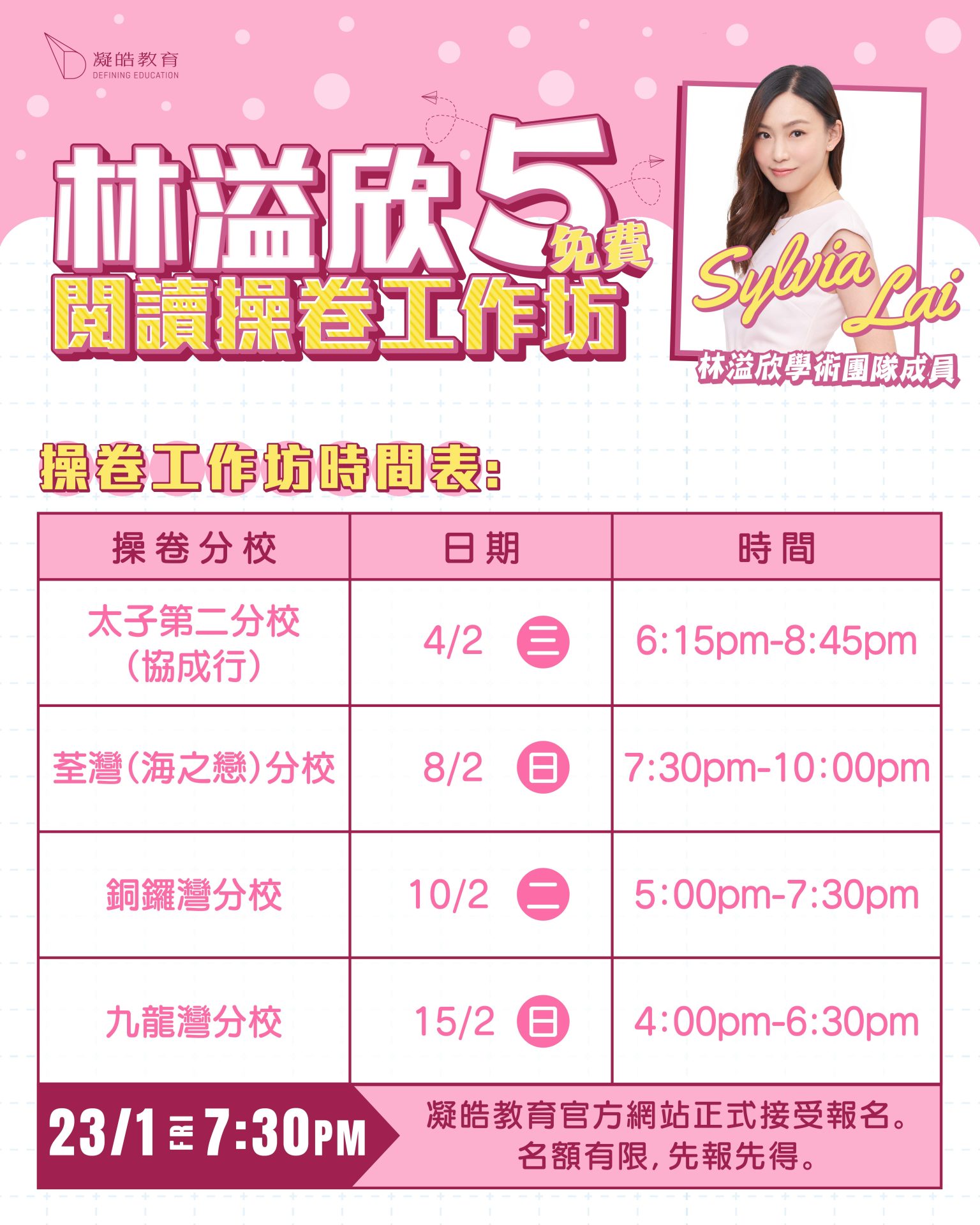 20 一月 【林溢欣】免費閱讀操卷工作坊(五) Posted at 22:00h in course, frontpagenews, 最新活動及優惠 by admin admin 0 Comments 0 Likes 立即報名 導師簡介 課程內容及時間表