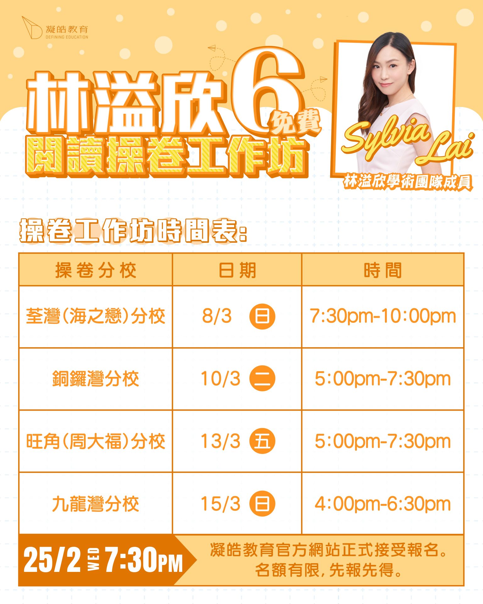 20 二月 【林溢欣】免費閱讀操卷工作坊(六) Posted at 22:00h in course, frontpagenews, 最新活動及優惠 by admin admin 0 Comments 0 Likes 立即報名 導師簡介 課程內容及時間表
