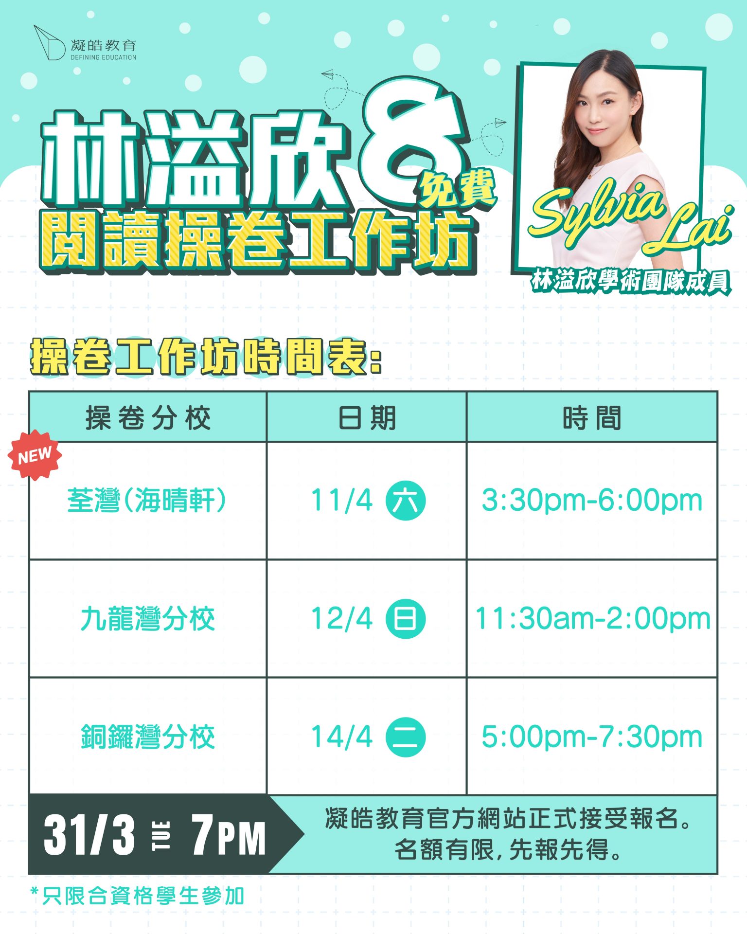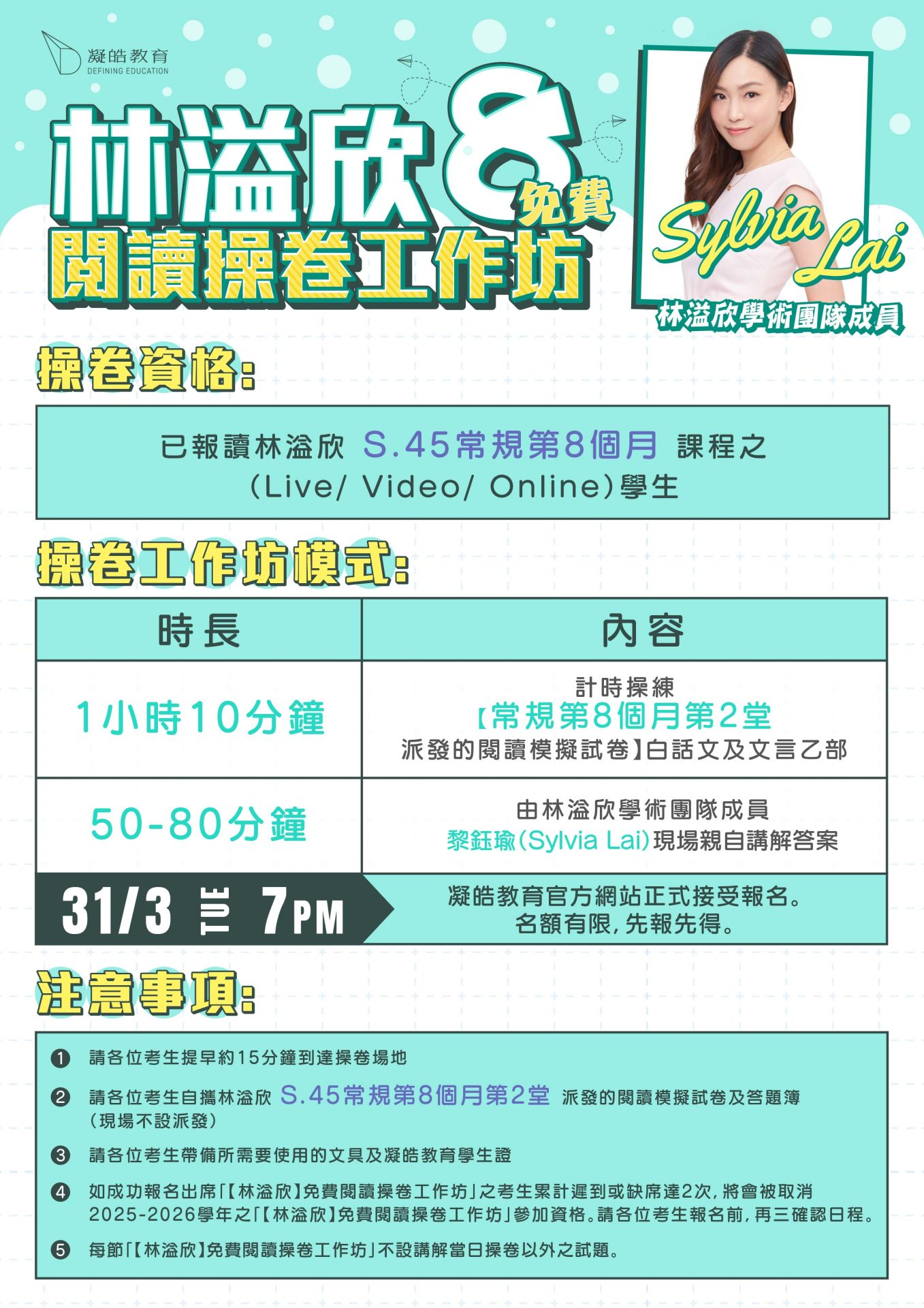 29 三月 【林溢欣】免費閱讀操卷工作坊(八) Posted at 22:00h in course, frontpagenews, 最新活動及優惠 by admin admin 0 Comments 0 Likes 立即報名 導師簡介 課程內容及時間表
