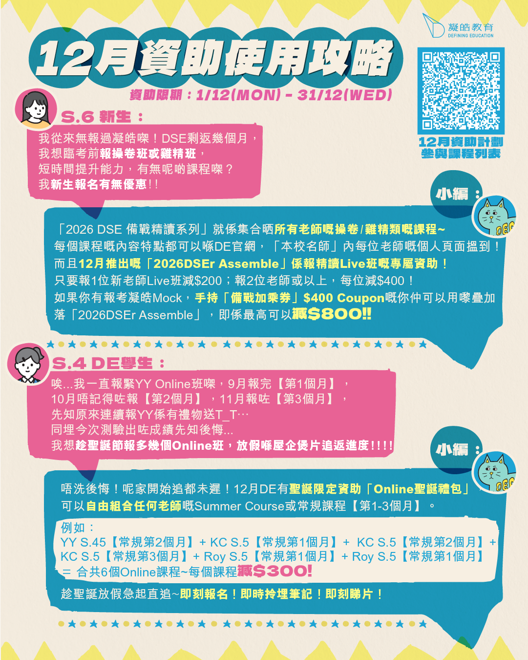 30 十一月 【12月資助】多人同行,每人減$400|追Online課程,每個最高減$300 Posted at 20:00h in frontpagenews by admin admin 0 Comments 0 Likes 新生註冊 新生攻略! 網上平台使用指引 精讀課程列表 資助使用課程列表