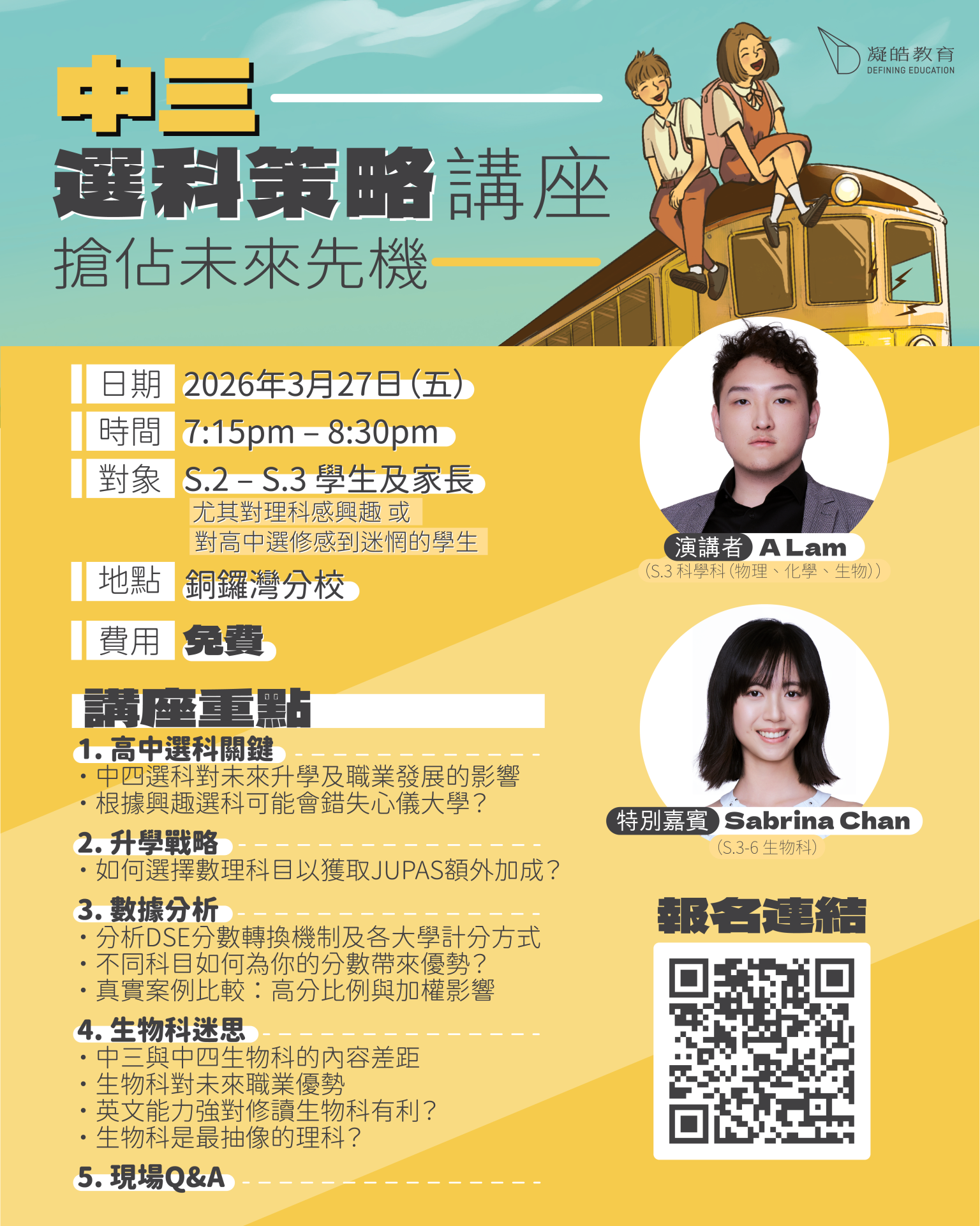12 三月 【立即報名】中三選科策略講座──搶佔未來先機|A.Lam X 特別嘉賓 Sabrina Chan