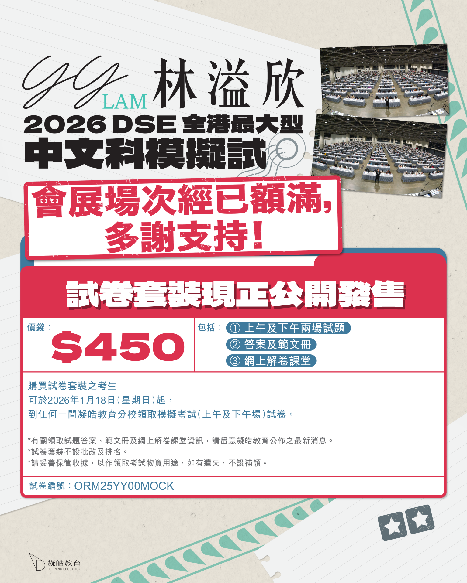 - 考生可於2026年1月18日(星期日)起,到任何一間凝皓教育分校領取模擬試卷。