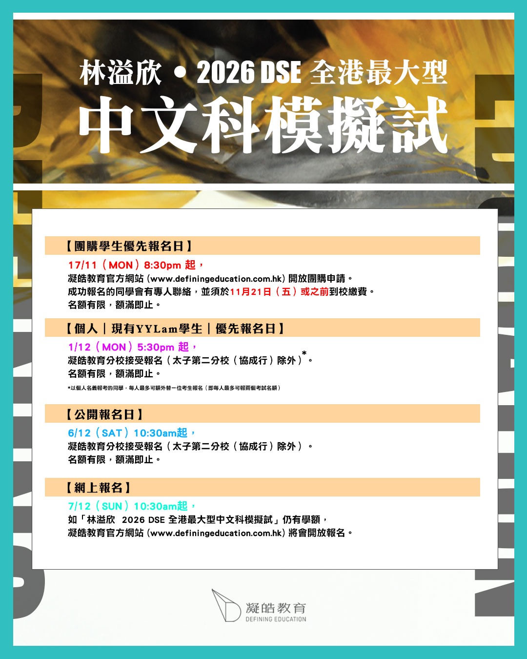 03 十一月 【團購報名】林溢欣・2026 DSE 全港最大型中文模擬試