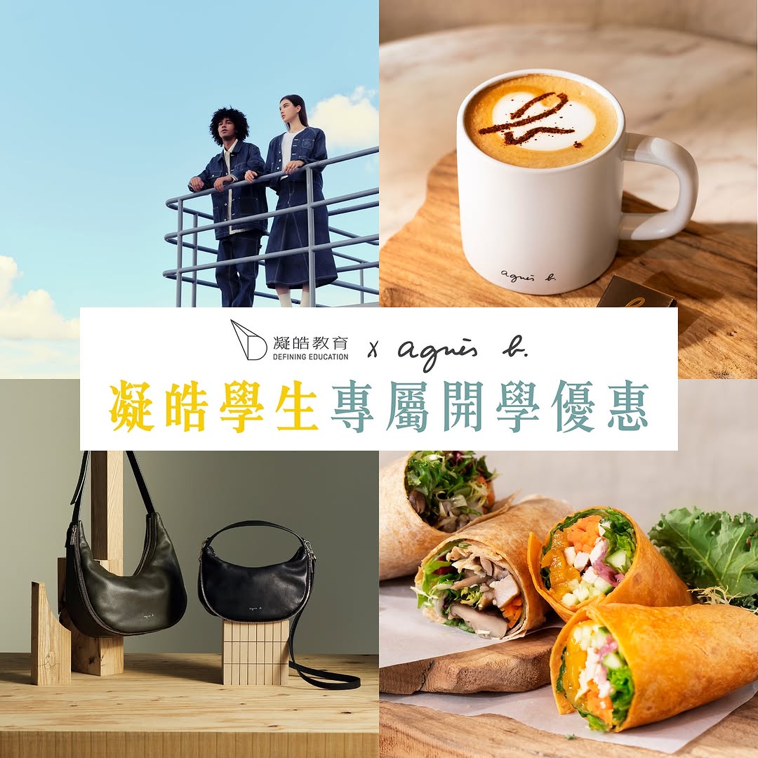 凝皓教育與法國時尚品牌 agnès b. 合作,推出消費及餐飲優惠,為學生打造結合「學習」與「法式生活美學」的全新體驗。