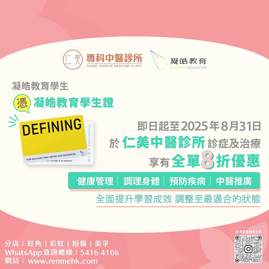 凝皓教育與仁美專科中醫診所合作,為導師、學生提供健康調理支援與專屬優惠。